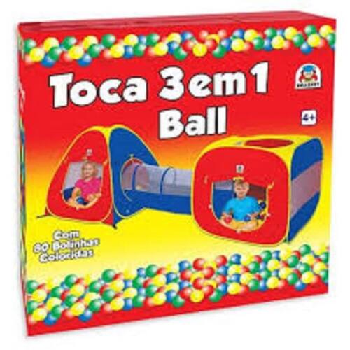 Duas tocas em tecido poliéster sendo uma triangular e outra quadrada, coloridas com armação em aço.As tocas são interligadas por um túnel. Acompanha 80 bolinhas coloridas nas cores amarelo, azul, verde e vermelho.Proporciona capacidade de locomoção, criatividade e imaginação de fantasia Dados técnicos Ref.: braskit Marca: 4600 Idade recomendada: 4 anos Material: tecido e aço Dimensões aproximadas da embalagem: 48 x 48 x 17 cm Código de barras: 7896771604607 Ce-bri/iqb-5868 nm 300/2002 Garantia: contra defeitos de fabricação Todas as informações divulgadas são de responsabilidade do fabricante/fornecedor. Imagens meramente ilustrativas. Observe atentamente a idade recomendada para o brinquedo. Pode conter partes pequenas que podem ser engolidas e perigosas. Ean: 7896771604607