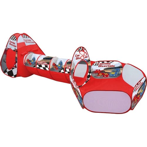 A barraca 3 em 1 corrida divertida é muito legal junte as 3 partes para formar uma super barraca ou brinque com as partes separadas. Ela vem com uma cestinha de basquete e você pode adicionar bolinhas de plástico não inclusas para deixar ainda mais divertido. Ela é dobrável, fácil de armar e não ocupa muito espaço na hora de guardar.