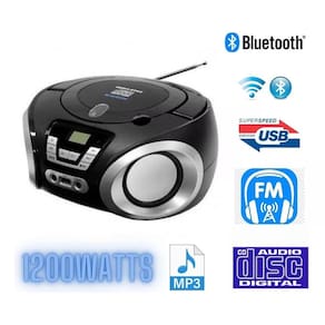 Marca: megastar Modelo: mp1842bt Cor: preto/prata Potência: 1.200 watts p.M.P.O Impedância: 4 ohms Conectividade wireless: bluetooth Equalizador: modos clase, jazz, rock e pop pré-configurados Características: controles de volume e reproduções integrados - conta com alça para facilitar o transporte - possui antena retrátil para a sintonização das estações de rádio Reproduz: cd e cd-r/rw Interface: usb - auxiliar in - mini jack 3.5 mm para fones de ouvido Rádio: fm Alimentação: através do cabo de alimentação ac ou 4 baterias c Voltagem: 100 - 240 v 50/60 hz Display: lcd de 4 dígitos retroiluminado por led azul Peso bruto g : 1347 Dimensões da embalagem cm : 25.7 x 14.4 x 24.6 Inclui: cabo de alimentação - cabo auxiliar - manual Marca: Não Informado Ean: 8690101131615
