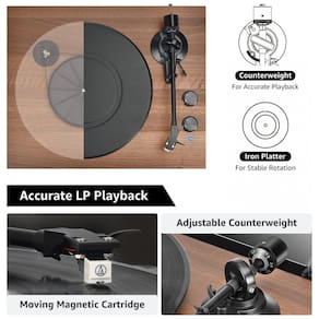 Alto falantes estéreo HIFI Os toca discos para discos de vinil vêm com alto falantes de estante de 2 18W, que produzem um som de estúdio equilibrado com graves profundos, baixa distorção e qualidade incrível. O pré amplificador integrado permite que você conecte seus alto falantes ou sistema estéreo via conectores RCA. Cartucho magnético móvel toca discos para vinil com alto falantes incluem cartucho magnético móvel de alta qualidade e caneta. Ele reproduz melhor os detalhes e o realismo encontrados nos discos, produzindo áudio rico e quente e excelente clareza de som que muitos modelos baratos não conseguem igualar. Entrada de streaming sem fio e gravação de vinil via PC este reprodutor de vinil permite que você ouça gravações via smartphone, tablet, computador ou outros dispositivos compatíveis. Ele também suporta codificação USB para PC, converte vinis em arquivos digitais MP3 via computador e reprodução. Plataformas giratórias de áudio e vídeo premium contrapeso ajustável, essencial para qualquer plataforma giratória clássica, permite o ajuste independente e preciso da força de rastreamento da agulha. O prato de ferro produz uma massa inercial uniforme, juntamente com o braço de alumínio estaticamente balanceado, reduzindo bastante a vibração do toca discos. Estética de aparência de madeira natural Após uma instalação simples, este toca discos vintage de 2 velocidades 33 1, 3 e 45 RPM acionado por correia combinará perfeitamente com seus móveis. Eles não vão ocupar muito espaço na sala e não vão entrar em conflito com o resto da decoração da sua casa