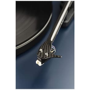 Braço de fibra de carbono de peça única de 20cm, headshell integrado. Seleção eletrônica de velocidade para 33 e 45 RPM capacidade para 78. Rolamentos de braço de safira de precisão de baixa fricção. Cartucho phono Sumiko Rainier, montado de fábrica e alinhado com precisão. Prato de aço estampado pesado de 1,7 kg com amortecimento TPE