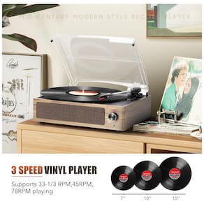 VINTAGE LOOKING GIFT OPTIONS Como um reprodutor de música combina idade e senso moderno, um toca discos estilo vintage e moderno é um ótimo ideal para sua família e amigos amorosos em todos os festivais. Não importa despertar um bom momento na memória, iniciar uma educação musical elementar ou apenas preparar uma surpresa de aniversário. OPÇÕES DE TRÊS TAMANHOS DE TRÊS VELOCIDADES Braço balanceado com controle de braço de elevação, suporte para ajuste de 3 velocidades de audição 33 1, 3, 45 e 78 RPM e reprodução de 3 tamanhos 17,25 e 30 centímetros de registros, permitem que você aproveite toda a sua coleção de discos. EMPARELHAMENTO DE ENTRADA SEM FIO Não apenas pode reproduzir discos de vinil para experimentar a música e a atmosfera de estilo retrô, mas também pode reproduzir todas as suas músicas favoritas a qualquer momento por meio de uma conexão sem fio, reproduzindo músicas de telefones celulares ou outros dispositivos de áudio. SISTEMA ANTIVIBRAÇÃO ACIONADO POR CORREIA A base da plataforma giratória é equipada com um design acionado por mola e correia para fornecer absorção de choque e melhorar a qualidade do som. Uma capa de poeira facilmente removível protege seus discos de vinil contra danos. ALTO FALANTE INTEGRADO E VERSÁTIL O alto falante estéreo dinâmico de gama completa fornece som para a audição diária de lazer. Não se preocupe se você não tiver alto falantes extras. Ou você pode se conectar a alto falantes externos via saída RCA para obter um som melhor. A reprodução AUX e USB também é uma maneira de reproduzir música. Fácil de configurar e usar, adequado para iniciantes Marca: Não Informado