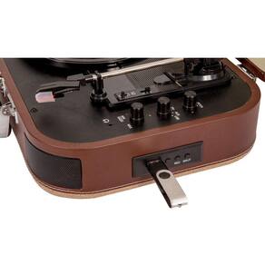 Toca Discos Vinil Vitrola Retrô Hills 48.400 ClassicEsse toca-discos em forma de maleta vai se destacar em qualquer ambiente e atrair olhares de longe.Além de reproduzir vinil 33/45/78, ainda reproduz por USB, conexão bluetooth e conta com entrada auxiliar P2 .Esse modelo ainda possibilita a gravação do vinil para o USB, ou seja, você poderá gravar o seu vinil favorito em um pen drive, por exemplo.