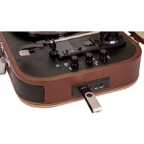 Toca Discos Vinil Vitrola Retrô Hills 48.400 ClassicEsse toca-discos em forma de maleta vai se destacar em qualquer ambiente e atrair olhares de longe.Além de reproduzir vinil 33/45/78, ainda reproduz por USB, conexão bluetooth e conta com entrada auxiliar P2 .Esse modelo ainda possibilita a gravação do vinil para o USB, ou seja, você poderá gravar o seu vinil favorito em um pen drive, por exemplo. Ean: 7899942900133