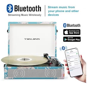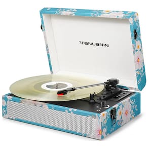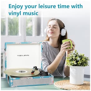 Toca Discos Vintage com 3 Velocidades, Alto Falantes Embutidos, Gravação USB e Entrada para Fone, TANLANIN, Azul Floral