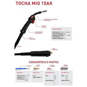 A linha de tochas MIG 15AK tem a capacidade de atender os mais variados tipos de trabalhos, de carga leve e média. Tocha de solda refrigerada a gás com alta qualidade e tecnologias incorporadas, necessárias para uma performance sem problemas em qualquer trabalho de soldagem.