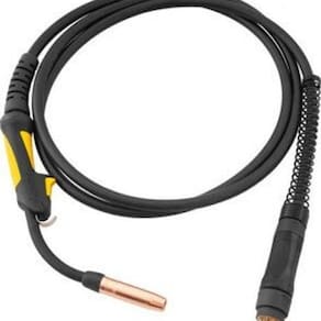 Tocha MIG/MAG. Acompanha: 1 bico 0,8 mm e 1 bico 1,2 mm.Possui corpo (micropistola) com isolação externa de borracha, bocal com parede espessa e isolação integrada, além de gancho para pendurar o equipamento. Equipada com conduíte de teflon para soldagem com arame de alumínio.Indicada para máquinas de solda MIG/MAG até 400 A, com encaixe euroconector. Pode ser utilizada com bicos de: 0,8 mm - 0,9 mm - 1,0 mm - 1,2 mm e 1,6 mm. Fator de trabalho: com gás CO2 a 360 A = 60%, com gás argônio a 330 A = 60% e com gás misturado a 330 A = 60%.Modelo:tmv 400Capac. Corrente (A)/fator de trabalho (%) misturas:330 A 60%Capac. Corrente (A)/fator de trabalho (%) CO2:360 A 60%Comprimento:3,5 mTipo de conector:EuroconectorDiâmetro do arame:0,8 mm a 1,6 mmRefrigeração:não