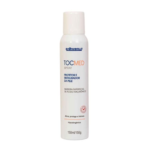 Tocmed Spray Protetor E Restaurador De Pele 150ml - Alivia enquanto melhora e acelera o processo de cicatrização em geral, cicatrização de feridas por problemas venosos diabetes, úlceras, escaras , de queimaduras pós laser, pós radioterapia.- Ajuda em casos de eczema, dermatites, psoríasis e vermelhidão