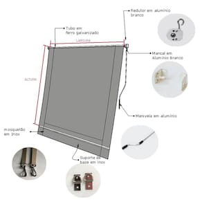 -Largura do Tecido: O tecido fica aproximadamente 3,5cm menor do que toda a estrutura (comando e suportes).