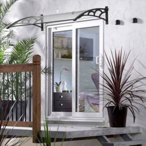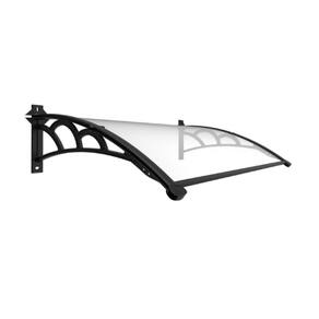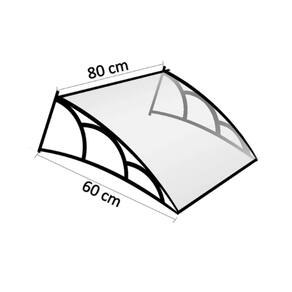 Toldo Fixo Versátil p/ portas, janelas e ar-condicionado - Cor: Chapa Cristal (Transparente) com Braço Preto | Tamanho: 80 Cm