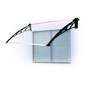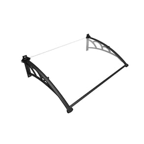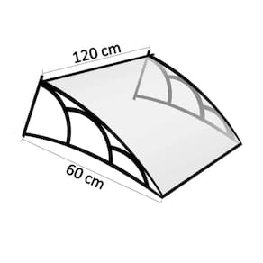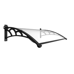 Toldo Fixo Versátil p/ portas, janelas e ar-condicionado - Cor: Chapa Cristal (Transparente) com Braço Preto | Tamanho: 120 Cm