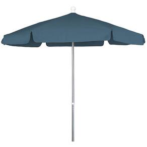 Guarda-chuva hexagonal de jardim construído em fibra de 7,5 pés, 6 costelas, alumínio brilhante com dossel de tecido revestido de vinil azul-petróleo
