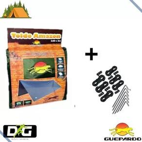 - 1 Toldo Amazon Guepardo - Estacas - Bolsa Para Transporte Com Zíper - 6 Cordas Para Fixação 1,80m cada