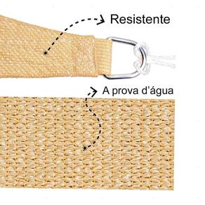 Ela permite a circulação do ar, diminuindo a sensação térmica sob a tela e produz sombra, tornando o ambiente mais fresco e arejado, protegendo contra os raios UV. Possui meias argolas antiferrugem nas quatro pontas da tela e acompanha kit de instalação completo.