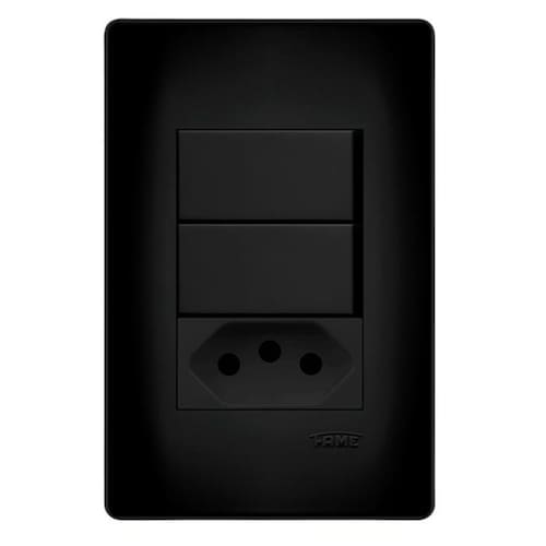 Tomada 10A + 2 Interruptores 16A Placa4X2 Habitat A Série Habitat FAME que já é referência no mercado pela sua qualidade, seu design exclusivo e acabamento acetinado, ganhou uma nova versão: Habitat Black Com acabamento preto acetinado a Série Habitat Black, é ideal para quem procura uma linha de material elétrico de qualidade que combine com sua decoração ou simplesmente prefere dar um toque de exclusividade e sofisticação em suas instalações elétricas. - Design e Tecnologia. - Agilidade na instalação. A FAME LTDA. Garante este produto contra eventuais defeitos de fabricação pelo prazo de 5 anos, contados e comprovados pela data de emissão do comprovante fiscal de venda ao consumidor, com atendimento no próprio local de aquisição. Validade: Produto não perecível. Importante: Antes de iniciar a instalação desligue o circuito elétrico. Convém que seja instalado por pessoa qualificada. Contem: 2 Interruptores 16A preto 1 Tomada 2P+T 10A preto 16a/250v 1 placa 4x2 preta para três modulos com suporte Marca: Não Informado