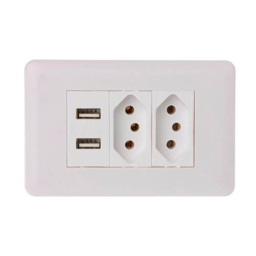 Tomada bivolt branco universal usb dupla parede Tomada parede usb duplo