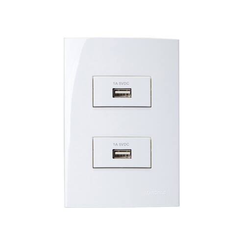 - 1 Tomada Carregador USB-A Dupla MarGirius Sleek 1A 5W com Placa e Suporte 4x2