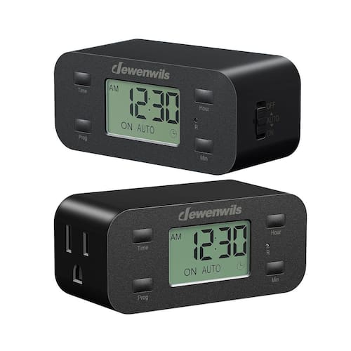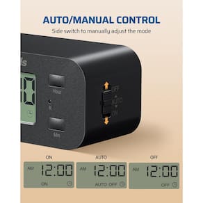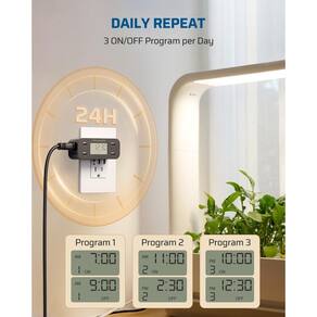 Saída de temporizador digital programável 24 horas DEWENWILS com 3 pinos e 1 tomada aterrada Atualize sua automação residencial com a tomada de temporizador digital programável DEWENWILS 24 horas, projetada para uso interno. Este temporizador versátil oferece conveniência e eficiência energética, tornando-o o complemento perfeito para qualquer casa. A tomada de temporizador digital programável DEWENWILS 24 horas é uma ferramenta essencial para automatizar seus eletrodomésticos e melhorar sua eficiência energética. Seu design amigável, recursos robustos e desempenho confiável o tornam um item essencial para qualquer casa moderna. Especificações: -Tensão: 1125V -Frequência: 60Hz -Carga máxima: 15A/1000W -Cavalo. potência: 1/2 HP -Saída: 1 tomada aterrada (3 pinos) O pacote inclui: -1 x DEWENWILS 24 horas programável digital temporizador tomada -1 x manual do usuário - [Programa de repetição diária de 3 grupos] Com 4 botões, este temporizador de lâmpada permite que você defina 3 horários diários: Sempre ligado, automático e sempre desligado; ajuste facilmente as configurações com o interruptor lateral e visualize-as na tela grande para maior comodidade - Minimalista e funcional: este temporizador de luz pequeno e elegante garante que outras tomadas permaneçam acessíveis; com suas laterais lisas e frente fosca, adiciona um toque de elegância minimalista à sua tomada, combinando perfeitamente com qualquer decoração de casa, ideal para elevar a aparência do seu espaço de vida - [Bateria reserva e desempenho silencioso] Nossos temporizadores de tomada internos vêm com uma bateria reserva que mantém suas configurações programadas por até 3 meses durante interrupções ou desconexões de energia; aproveite o desempenho silencioso, tornando-os uma excelente escolha para quartos - [Eficiência energética e confiável] Este temporizador preciso e confiável, preciso ao minuto, garante que seus dispositivos plug-in liguem e desliguem de acordo com sua programação, economizando tempo e energia; também faz sua casa parecer ocupada mesmo quando você não está lá - [Classificação e ampla aplicação] Projetado para 125V, 60Hz, 15A/1000W, esta tomada de 3 pinos é perfeita para decorações de Natal e Natal, luzes de plantas, bombas hidropônicas, aquários, tanques de répteis, aquecedores, iluminação interna e uma variedade de dispositivos eletrônicos