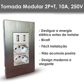 Tomada dupla 10a com 2 usb - padrão luxo Após a instalação que é feita da mesma forma de uma tomada convencional de casa , basta plugar o cabo usb e começar a carregar seus aparelhos eletrônicos . Desenvolvida para substituir sua tomada de parede convencional e lhe proporcionar praticidade e tecnologia na hora do carregamento de seus aparelhos eletrônicos.