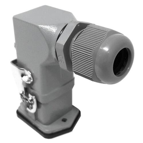 A carcaça do conector é feita de alumínio e possui um revestimento em pó a alta temperatura, garantindo durabilidade e resistência contra corrosão. A vedação de borracha nitrílica proporciona uma proteção IP65, tornando este conector resistente a poeira e à água.