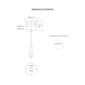 Descrição do produto Entrada de 5v/a; Saídas de 5v/12a; Cabo de 1,2m; Fixação embutida em recorte de 40mm. Marca: Não Informado