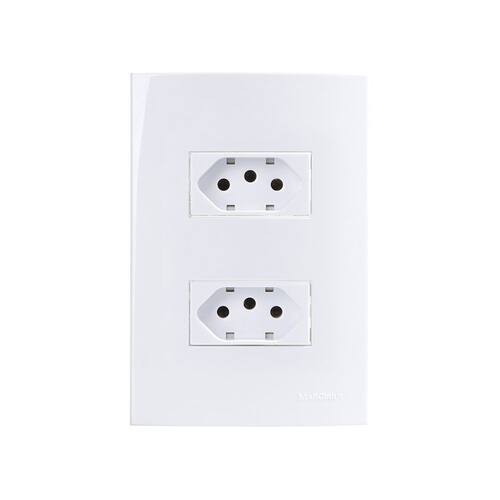 - 1 Tomada Dupla MarGirius Sleek 2P+T 10A com Placa e Suporte 4x2