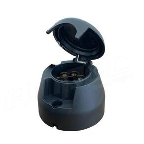 A tomada plug elétrica para reboque carretinha de 6 polos fêmea é ideal para conexão móvel de engate. Com acabamento em plástico preto, essa tomada é resistente e durável.
