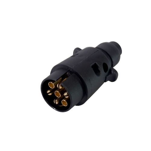 Tomada plug para engate de carretinha reboque 6 polos macho. Especificações técnicas - - 6 polos - alta resistência - universal - preta - indicado para o uso em carretas, carretinhas, reboques e trailers. Compatibilidade universal