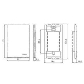 Dimensões AxLxP (mm): Placa: 125x85x8,5 - Suporte: 125,3x65x14,6