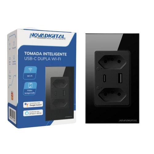 Configuração via app como a tomada deve retornar em caso de queda de energia. Aterramento padrão. Vidro temperado frontal anti risco e de fácil limpeza. Consumo em standy-by: 0.5W. Padrão brasileiro 4x2 de embutir. Medidas: 120 x 72 x 45mm 12 x 7.2 x 4.5cm . Certificado pela Anatel: 08206-21-11765. Modelo: S2C-USB-C. Marca: NovaDigital.