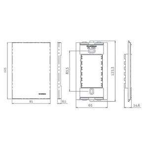 Dimensões AxLxP (mm): Placa: 125x85x8,5 - Suporte: 125,3x65x14,6