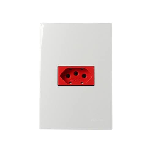 Tomada MarGirius Sleek 2P+T 20A Vermelha com Placa 4x2 Branca - Branco