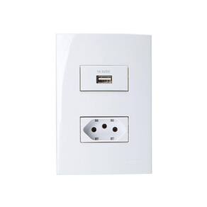 Tomada USB-A 1A 5W e Tomada 2P+T 10A MarGirius Sleek com Placa 4x2 Branca