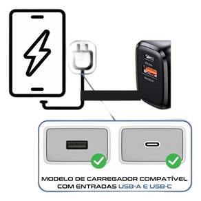 Tomada USB Preta com turbo para dispositivos USB O codigo de homologacao da Anatel e 157922215167. Este carregador universal se ajusta a qualquer dispositivo com conexão USB. Compatibilidade com USB-C, V8 e Lightning. Indicadores LED que sinalizam o status de carga. Teste realizado para garantir funcionamento em diversos aparelhos. O envio e rapido para todo o pais. O produto acompanha adaptador de cabo exclusivo para compatibilidade geral. Seja mais produtivo e organizado com menos equipamentos.
