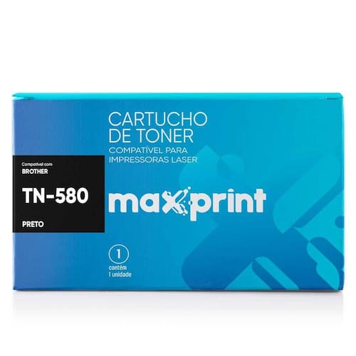 - Marca: Maxprint - Modelo: TN-580 - Tecnologia de impressão: Laser - Cor: Preto - Rendimento: Aproximadamente 7.000 páginas - Rendimento aproximado médio com base na norma ISO/IEC 19752. O rendimento real varia consideravelmente de acordo com o conteúdo das páginas impressas e outros fatores. - Compatível com: as Impressoras P2500/1600/1800/5000/5100/LT/9700/9800, DCP1200/1400/8000, FAX 8350P/9750P, INTELIFAX 4 .