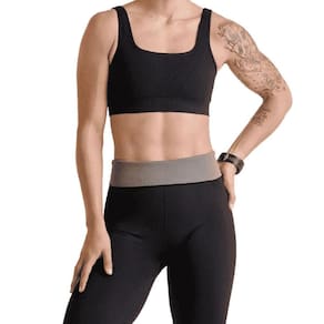 Confeccionado com tecido Seamless Dry: Sem costura: Desenvolvido com a mais moderna tecnologia sem costura, possui grande diversidade de pontos e detalhes, possui menos áreas de atrito, sendo que toda estrutura da peça é uniforme, resultando em uma vestibilidade de maior conforto com a tecnologia que permite o uso de pontos para sustentação e suporte muscular. Contém tecido antimicrobial, com tratamento de higienização que impede a proliferação de microrganismos e bactérias causadores de odores e alças médias, possui decote frontal e posterior em formato quadrado, além de ter um charmoso detalhe de desenhos de listras e texturas.
