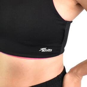 Top Feminino Activitta Esportivo Alças Cruzadas Versátil Preto Fúcsia 347713 O Top Feminino Activitta Esportivo Alças Cruzadas Versátil Preto Fúcsia combina estilo, conforto e praticidade em uma única peça. Seu design dupla face permite variar entre o clássico preto e o vibrante fúcsia, oferecendo versatilidade para diferentes looks. Produzido em poliamida esportiva, é leve, respirável e de secagem rápida, garantindo conforto máximo durante os treinos. Com modelagem sem bojo, proporciona ajuste natural ao corpo, priorizando leveza e liberdade de movimento. O detalhe cruzado nas costas adiciona um toque moderno e melhora a mobilidade, sendo ideal para corridas, treinos intensos e yoga. Além disso, sua alta sustentação o torna perfeito para atividades de médio e alto impacto. Especificações Técnicas: Indicado para: Atividades físicas, dia a dia Gênero: Feminino Cor: Preto-Multi FúcsiaMarca: ActivittaComposição: 98% Poliamida e 2% ElastanoTipo de ajuste: Alças cruzadas que garantem estabilidadeGarantia do fabricante: 90 dias após o recebimento do produto, contra defeito de fabricação Tabela de medidas Activitta:Tamanho ----------------------- BustoP (36/38) ----------------------- 78-82M (40/42) ----------------------- 82-90G (44/46) ----------------------- 90-98GG (48/50) --------------------- 98-106
