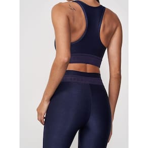 Com design minimalista e alças largas, oferece excelente suporte para atividades de média intensidade, como musculação, funcional ou yoga. Seu elástico personalizado na base, com logo em alto-relevo, garante firmeza e um toque moderno ao visual.