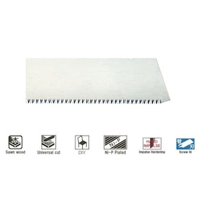 Lâmina de reposição para serrote corte Universal S-265. Ideal para se usar junto com o Esquadro Angular Topman, serrote ref 30002 Zsaw. Ótimo para madeira, móveis, artesanato e modelismo. Lâmina fina de alta qualidade e durabilidade, produz cortes limpos, precisos e controlados.Dentes endurecidos por impulso que permite uma afiação prolongada e cortes superiores. Tratamento especial com niquel que resulta em corte preciso e alta resistência a ferrugem.Especificações:Comprimento da Lâmina: 265mmPitch entre dentes : 1,75 mmEspessura: 1,6 mmCorte Kerf : 0,92 mmEncaixe no cabo: Tipo ParafusoOrigem: JapãoMarca: ZetSaw