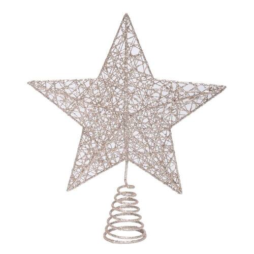 Ponteira De Árvore Estrela Aramada Champagne C/ Glitter 30x25x6cm 1 Unid 1019340