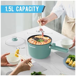 O Hot Pot elétrico TopWit de 1,5 litros é a solução perfeita para suas refeições diárias, combinando eficiência, praticidade e segurança em um único produto. Com duas configurações de potência - 250W e 600W - você pode preparar uma variedade de pratos com facilidade, desde aveia, espaguete, panquecas e ovos na potência baixa, até bifes, salmão, refogados e hot pot na potência alta. Seu design inteligente com capacidade ideal para até 12 pessoas oferece amplo espaço para cozinhar ramen, hot pot, saltear e fritar, contando com um diâmetro de aproximadamente 18 cm e profundidade de 13 cm. A panela possui um cabo longo que garante uma pegada confortável, facilitando o manuseio durante o cozimento e a limpeza.