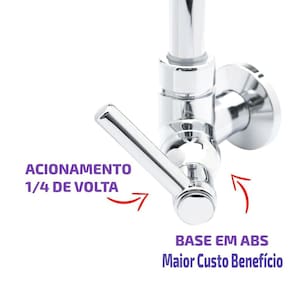 A Torneira Gourmet Cozinha Parede Abs Tik De Casa possui acionamento de 1/4 de volta, o que permite um controle preciso do fluxo de água. Ela pode ser utilizada em cozinhas e áreas gourmet, trazendo um toque de elegância e modernidade para o ambiente.