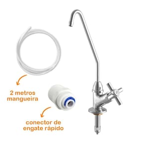 O Kit Torneira Bancada Faucet Conector 1/2 2 Metros Mangueira é ideal para instalar filtros e purificadores embaixo da pia. Com utilização em ponto de uso bancada , esse kit inclui uma torneira de bancada de alta qualidade.