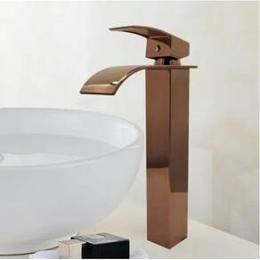 TORNEIRA BANHEIRO CASCATA MONOCOMANDO MISTURADOR ALTA ROSE GOLDINSTALAÇÃOOs acessórios necessários para sua fixação encontram-se dentro da embalagem, assim como duas mangueiras flexíveis para conexão nas saídas de água quente e fria na parede. O aquecimento da água deve ser realizado antes da torneira, seja ele através de aquecedor solar, a gás ou elétrico. Para os casos onde há apenas água fria, essa torneira é igualmente recomendada, bastando apenas instalar um “T” plástico ou metálico (NÃO INCLUSO) na saída de água da parede, ao qual seriam conectadas ambas mangueiras que acompanham o produto. Especificações - Temperatura máxima da água: 70°C - Cartucho Cerâmico de alta performance (500.000 ciclos) - Pressão Mínima de água recomendada: 6 mca - Pressão Máxima de água Recomendada: 40 mca - Furação da Bancada: 35 mm - Material: 100% Metal - Cor: Rose Gold Medidas: - Altura: 30 cm - Altura da bica: 22cm - Comprimento: 17cm - Comprimento da base: 4,5 cm ITENS INCLUSOS- 1 torneira- 2 Mangueiras conectoras- Acessórios de fixação GARANTIA: 3 MESES À PARTIR DA DATA DE ENTREGA DO PRODUTO