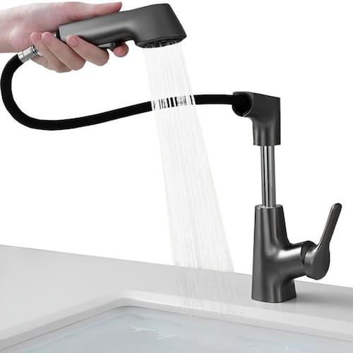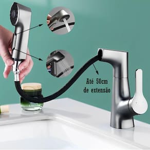 •Mobilidade: A capacidade giratória e extensora do bico da torneira é uma característica que oferece conveniência no direcionamento do fluxo d'água. Com um corpo que pode girar em torno do seu eixo, e um bico que pode esticar em 50cm, possibilitando alcançar diferentes áreas da pia, facilitando tarefas como a lavagem de louças ou o preenchimento de recipientes volumosos. Essa versatilidade é especialmente útil em cozinhas, onde a mobilidade da torneira pode se adaptar às diversas necessidades do ambiente.