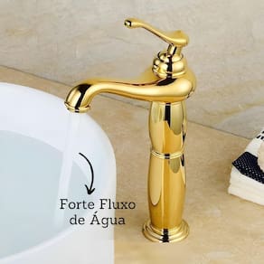 Torneira Banheiro Dourada Alta Vintage Monocomando Lavabo