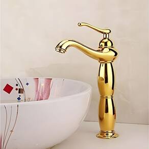Torneira Banheiro Dourada Alta Vintage Monocomando Lavabo