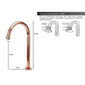 Torneira Banheiro/Lavatório Pratica Clean Rose Gold Alta Torneira Banheiro/Lavatório Pratica Clean Rose Gold Alta 1/4V Torneira 100% Metal. Controle de vazão através do arejador. Design Clean e Sofisticado. Com design moderno, a Torneira para lavatório pratica é uma excelente opção para deixar seu banheiro mais elegante e prático, garantindo um melhor uso e facilitando sua vida na hora de se higienizar. Elaborada em ligas de cobre, um material de alto padrão que confere grande resistência e durabilidade ao produto, recebe um belíssimo acabamento cromado, dando um toque de estilo e requinte à peça. Somado a isso, conta com acionamento de 1/4 de volta e arejador econômico, reduzindo o consumo de água ao misturar ar com água, aumentando seu volume e proporcionando uma sensação de maior quantidade. Valorize sua casa com uma funcional e bonita Torneira Link. - Controle de vazão através do arejador. Design Clean e Sofisticado. - Torneira fabricada em metal latão alta resistência e durabilidade, proporcionado um custo beneficio sem igual. - Pintura eletroestática, não desbota e não descasca. - Sistema de Acionamento de volta com pastilhas cerâmicas. - Fácil instalação e manutenção. - Ideal para cubas de apoio ou sobrepor. - Não use palha de aço ou qualquer produto químico na limpeza do metal. Limpe-o com toalha macia e sabão neutro.. Você vai se surpreender com a qualidade do produto Recomendações de Uso, Manutenção e Limpeza: Limpar a torneira apenas com um pano macio e sabão neutro. Não usar produtos abrasivos como: sapólio, palha de aço e produtos químicos. Marca: Lhd Metais