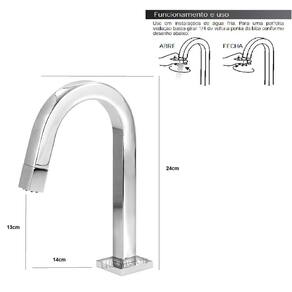 Torneira Banheiro Lavatório Quadrada Pratica Clean Metal Cr. Torneira Banheiro Lavatório Quadrada Pratica Clean Metal Cromado 1/4V. Torneira 100% Metal. Controle de vazão através do arejador. Design Clean e Sofisticado. Com design moderno, a Torneira para lavatório pratica é uma excelente opção para deixar seu banheiro mais elegante e prático, garantindo um melhor uso e facilitando sua vida na hora de se higienizar. Elaborada em ligas de cobre, um material de alto padrão que confere grande resistência e durabilidade ao produto, recebe um belíssimo acabamento cromado, dando um toque de estilo e requinte à peça. Somado a isso, conta com acionamento de 1/4 de volta e arejador econômico, reduzindo o consumo de água ao misturar ar com água, aumentando seu volume e proporcionando uma sensação de maior quantidade. Valorize sua casa com uma funcional e bonita Torneira Link. - Controle de vazão através do arejador. Design Clean e Sofisticado.- Torneira fabricada em metal latão alta resistência e durabilidade, proporcionado um custo beneficio sem igual. - Sistema de Acionamento de volta com pastilhas cerâmicas.- Fácil instalação e manutenção.- Ideal para cubas de apoio ou sobrepor. - Não use palha de aço ou qualquer produto químico na limpeza do metal. Limpe-o com toalha macia e sabão neutro.. Você vai se surpreender com a qualidade do produto Recomendações de Uso, Manutenção e Limpeza: Limpar a torneira apenas com um pano macio e sabão neutro. Não usar produtos abrasivos como: sapólio, palha de aço e produtos químicos. Marca: Modelar