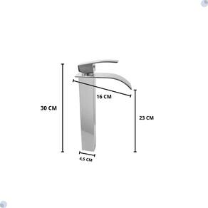 TORNEIRA PARA BANHEIRO MISTURADOR MONOCOMANDO CROMADA CASCATA ALTAESPECIFICAÇÕES: Material: Metal com acabamento cromado Altura: 30cm Largura: 5cm Profundidade: 16 cm Diâmetro Bitola: 3cm Altura da Queda d'água: 24cm Furação da Bancada: 35 mm Cor: Aço cromadoITENS INCLUSOS- 1 torneira- 2 Mangueiras conectoras- Acessórios de fixação GARANTIA: 3 Meses à partir da data de entrega do produto